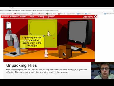 Mr. Andersen describes the virtual fly lab. Software at sciencecourseware.org allows for multiple matings and statistical analysis.