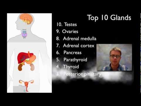Paul Andersen explains the major elements in the endocrine system. He explains how glands produce hormones which target cells. He differentiates between water soluble and lipid soluble hormones. He then describes the hormones and actions of ten glands: pineal, anterior pituitary, posterior pituitary, thyroid, parathyroid, pancreas, adrenal cortex, adrenal medulla, testes and ovaries.