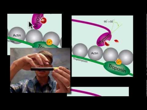 Paul Andersen explains the three types of muscle found in humans; striated, smooth and cardiac muscle. He explains how actin and myosin interact to contract the sarcomere in a muscle. The sliding filament theory explains how ATP and calcium are used to contract the z disks.